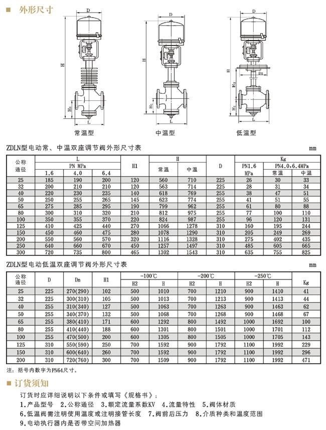 电动双座调节阀,ZDLN电子式电动双座调节阀外形尺寸