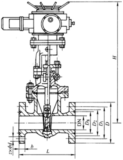 | Z941H、Z941Y 型PN200 钢制电动楔式闸阀主要外形及结构尺寸(mm) | ||||||||